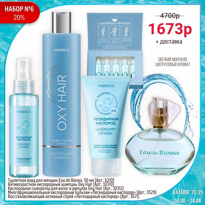 Всем, кто зарегистрируется в Faberlic с 13 апреля по 3 мая 2026 года и совершит покупку в периоде №06/2026, дарим набор Oxy Hair при заказе по следующему каталогу с 4 по 24 мая 2026 года.